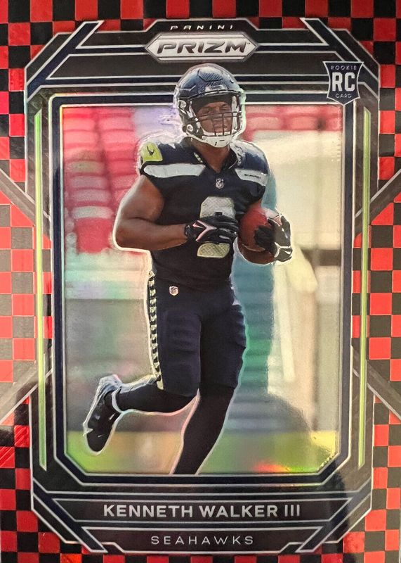 The Kenneth Walker III 2022 Prizm #318 Black & Red Checker /(SSP) Rookie card in Raw condition has not changed in price in the last 30 days and was last sold for $57.99 .