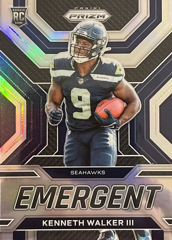2022 Prizm Kenneth Walker III Emergent SILVER Prizm Rookie RC #E-12 Seahawks