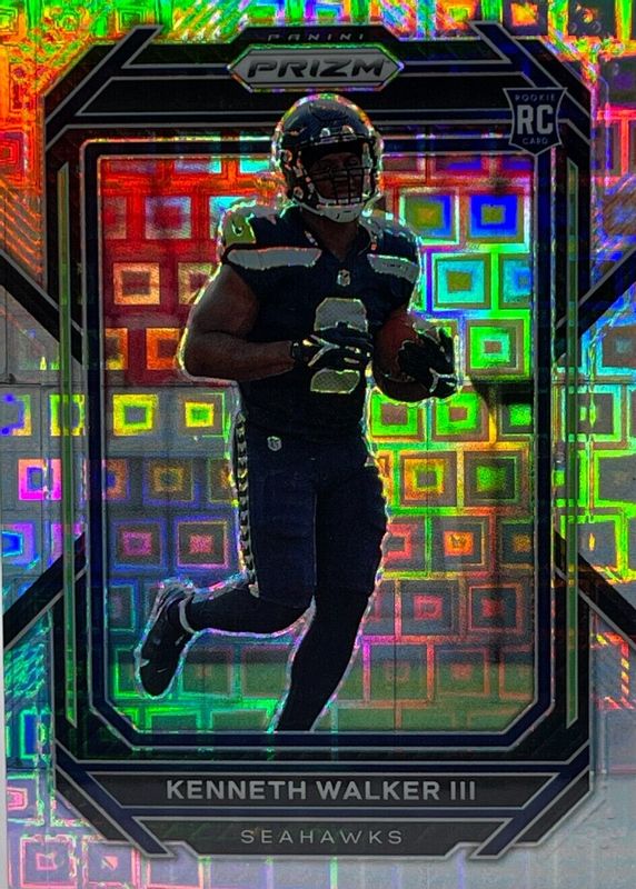 The Kenneth Walker III 2022 Prizm #318 Pandora /400 Rookie card in Raw condition has moved up $4.01 (+66.9%) in the last 30 days and was last sold for $10.00 .