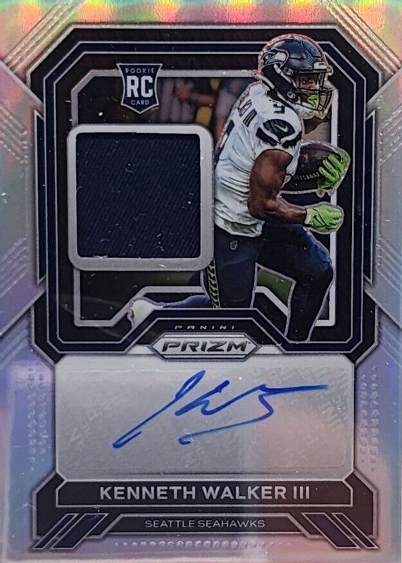 The Kenneth Walker III 2022 Prizm #RPA-KW Rookie Patch Auto /99 card in Raw condition has not changed in price in the last 30 days and was last sold for $22.19 .