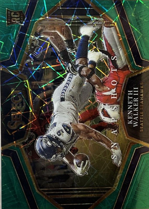 The Kenneth Walker III 2022 Select #SS-11 Snapshots - Green /5 Rookie card in Raw condition has not changed in price in the last 30 days and was last sold for $75.00 .