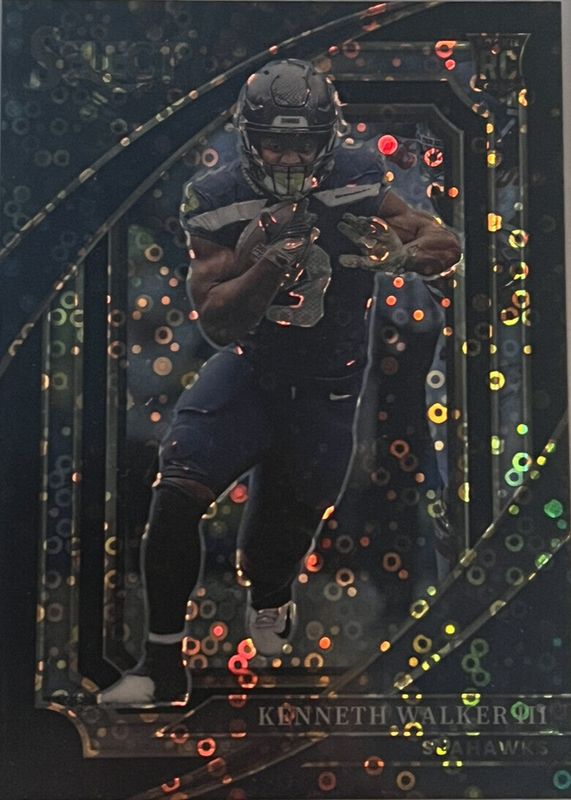 This card is 1 of 140 Kenneth Walker III's card variations in the 2022 Select set being tracked by Sports Card Investor, including Concourse, Field Level, Suite Level, Concourse Black & Green Die-Cut, and Concourse Black & Red Die-Cut.