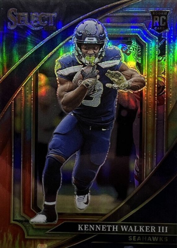 This card is 1 of 140 Kenneth Walker III's card variations in the 2022 Select set being tracked by Sports Card Investor, including Concourse, Field Level, Suite Level, Concourse Black & Green Die-Cut, and Concourse Black & Red Die-Cut.