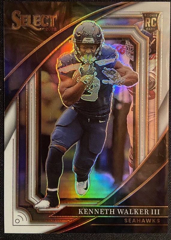 This card is 1 of 140 Kenneth Walker III's card variations in the 2022 Select set being tracked by Sports Card Investor, including Concourse, Field Level, Suite Level, Concourse Black & Green Die-Cut, and Concourse Black & Red Die-Cut.