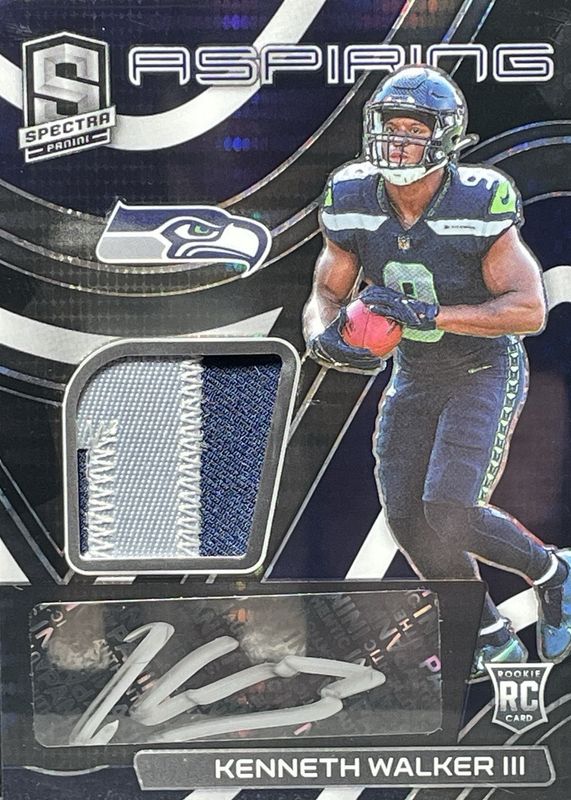 The Kenneth Walker III 2022 Spectra #APA-KWA Aspiring Patch Autographs - Neon Black Light /10 Rookie card in Raw condition has not changed in price in the last 30 days and was last sold for $41.00 .