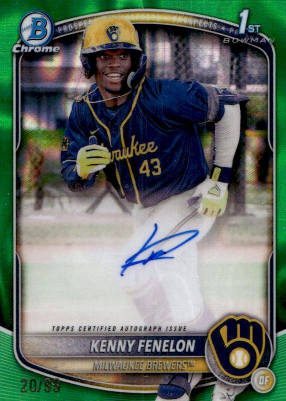 Kenny Fenelon 1st /99 2025 Bowman Chrome Green Lava Auto Milwaukee Brewers