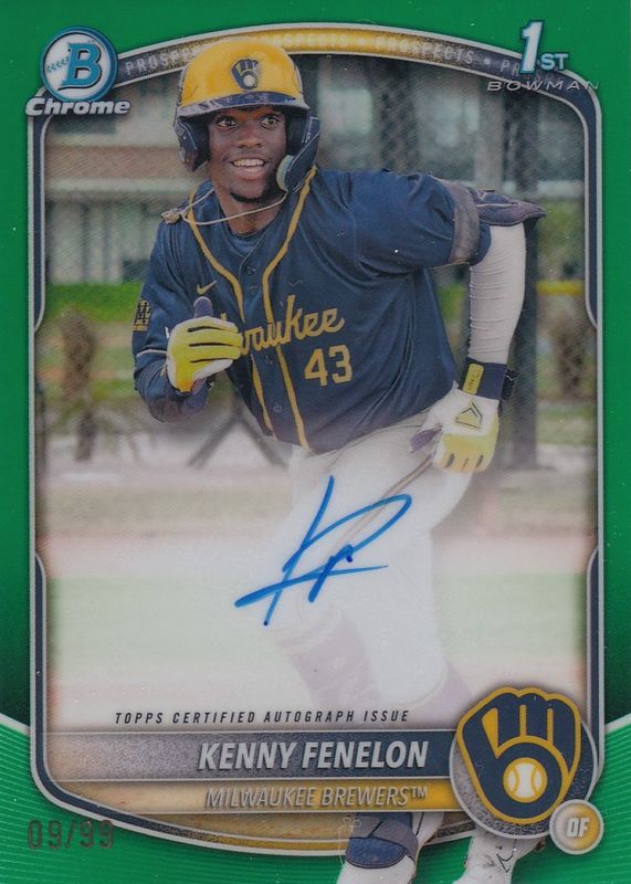 2025 Bowman Chrome Kenny Fenelon 1st True Green Auto /99 Brewers CPA-KF (DW)