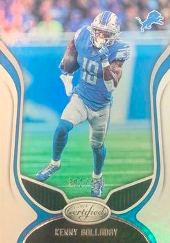The Kenny Golladay 2019 Certified #68 Mirror (Rookie) /299 card is 1 of 15 Kenny Golladay's card variations in the 2019 Certified set being tracked by Sports Card Investor, including Base, Mirror Orange /199, Mirror Red /99, Mirror Teal /35, and Mirror Gold /25.