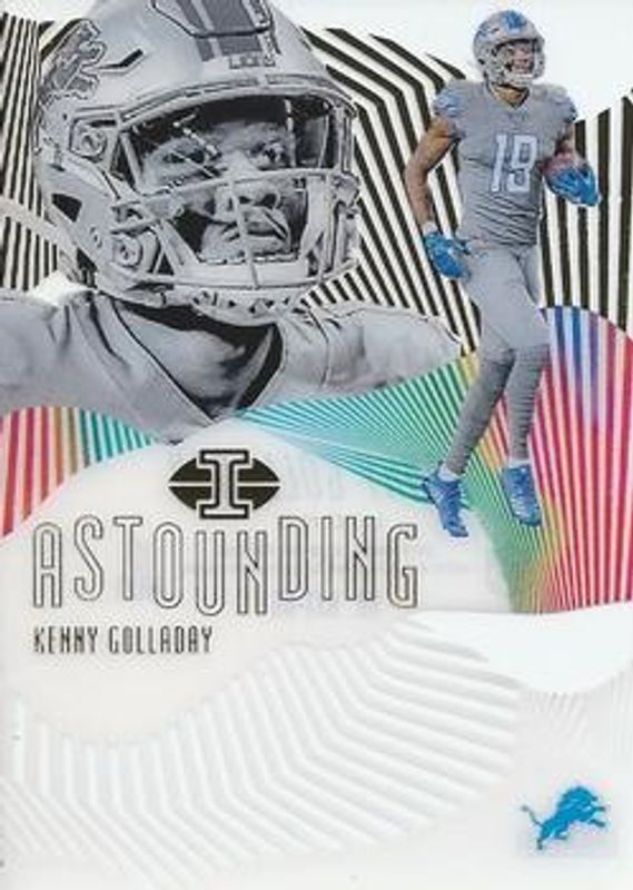 The Kenny Golladay 2019 Illusions #AST-KG Astounding card is 1 of 22 Kenny Golladay's card variations in the 2019 Illusions set being tracked by Sports Card Investor, including Base, Retail, Trophy Collection Emerald, Trophy Collection Orange, and Trophy Collection Sapphire.