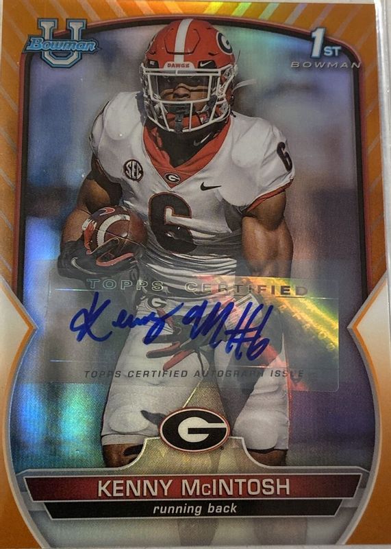 Auctions Ending Soon for Kenny McIntosh 2022 Bowman Chrome University #44 Prospect Auto - Orange Refractor /25 (1st) RAW