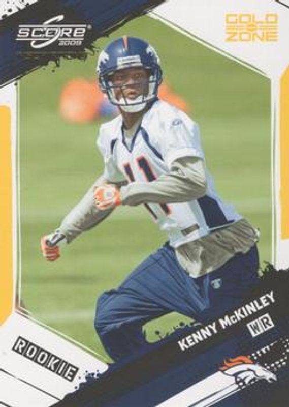 The Kenny McKinley 2009 Score Inscriptions #362 Gold Zone /50 Rookie card is 1 of 10 Kenny McKinley's card variations in the 2009 Score Inscriptions set being tracked by Sports Card Investor, including Base /999, Scorecard /50, Artist's Proof /32, Red Zone /30, and End Zone /6.
