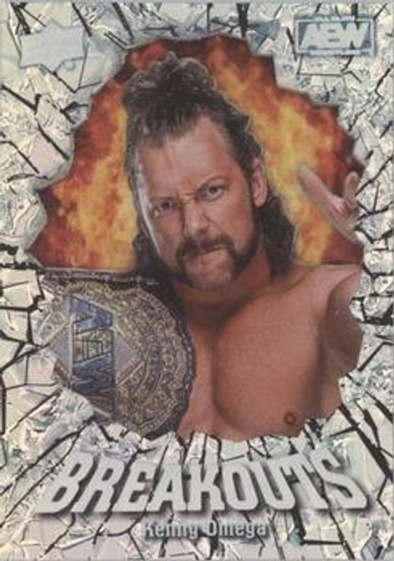 The Kenny Omega 2022 Upper Deck AEW #BO-29 Breakouts card is 1 of 35 Kenny Omega's card variations in the 2022 Upper Deck AEW set being tracked by Sports Card Investor, including Base, Gold, Pyro, Silver Foil, and Green Pyro /399.