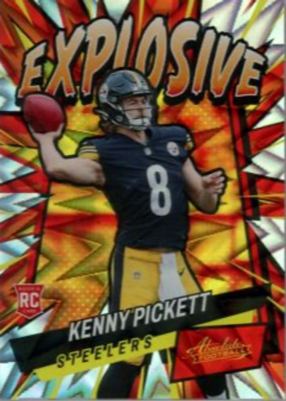 Kenny Pickett's Football cards are available in at least 49 sets. Kenny Pickett's biggest 7-day price movers are 2022 Absolute #E36 Explosive /(SSP), 2022 Optic #DT-KP Downtown /(SSP), and 2022 Origins #BLS-25 Blank Slate /(SSP).