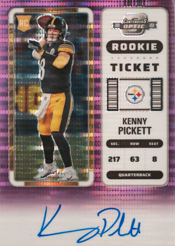 Best Prices Available For Sale of Kenny Pickett 2022 Contenders Optic #127 Rookie Ticket Auto - Purple Pulsar /21