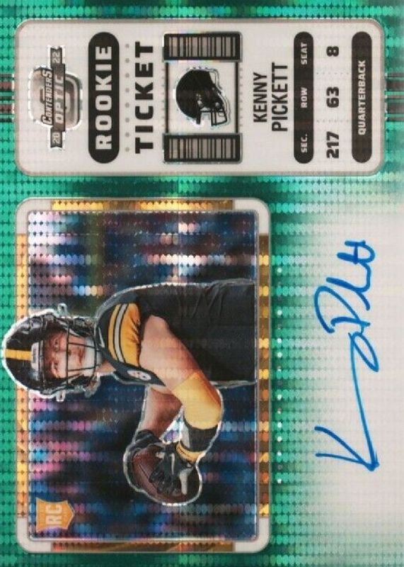 Auctions Ending Soon for Kenny Pickett 2022 Contenders Optic #127 Rookie Ticket Auto Variation - Green Pulsar /15 RAW