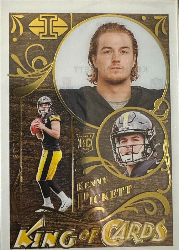 The Kenny Pickett 2022 Illusions #KC-16 King of Cards Rookie card in Raw condition has moved down -$10.51 (-87.6%) in the last 30 days and was last sold for $1.49 .