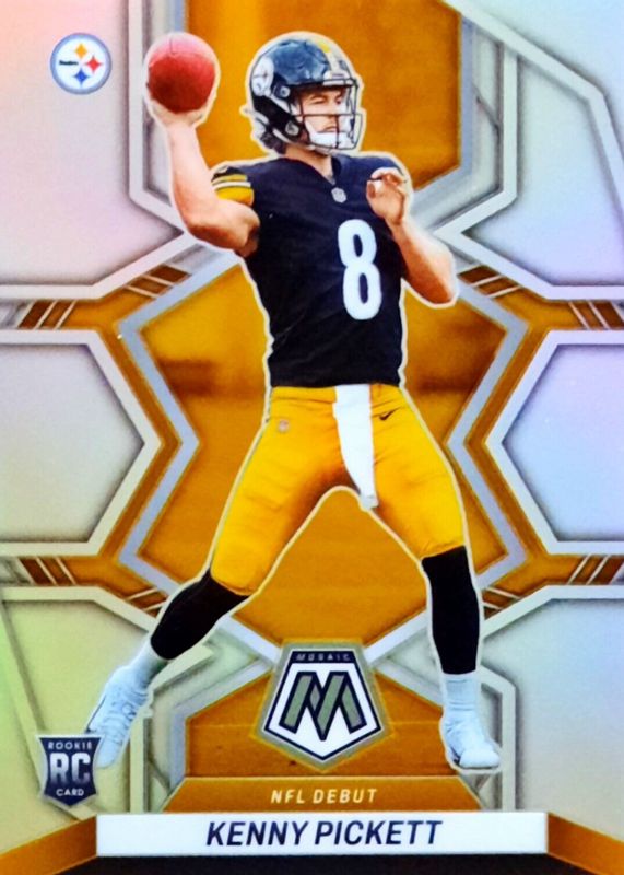 The Kenny Pickett 2022 Mosaic #270 NFL Debut - Silver Rookie card in Raw condition has moved down -$11.01 (-91.8%) in the last 30 days and was last sold for $0.99 .