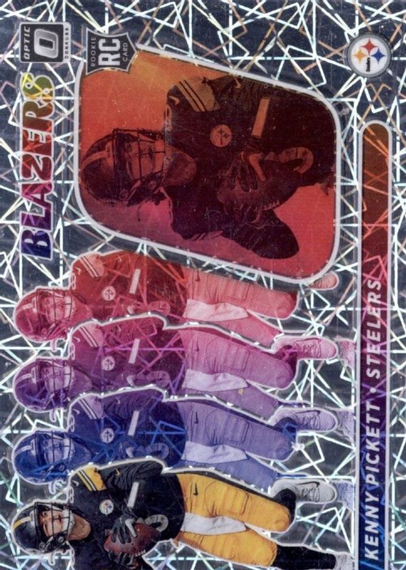 The Kenny Pickett 2022 Optic #B-13 Blazers /(SSP) Rookie card in Raw condition has moved up $2.25 (+40.9%) in the last 30 days and was last sold for $7.75 .