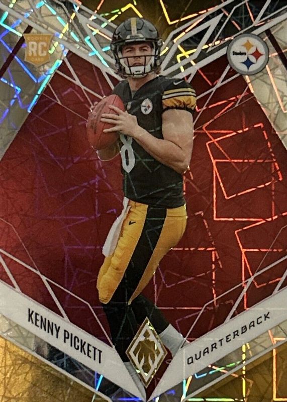 The Kenny Pickett 2022 Phoenix #101 Red Lazer (Rookie) /150 card in Raw condition has not changed in price in the last 30 days and was last sold for $5.40 .