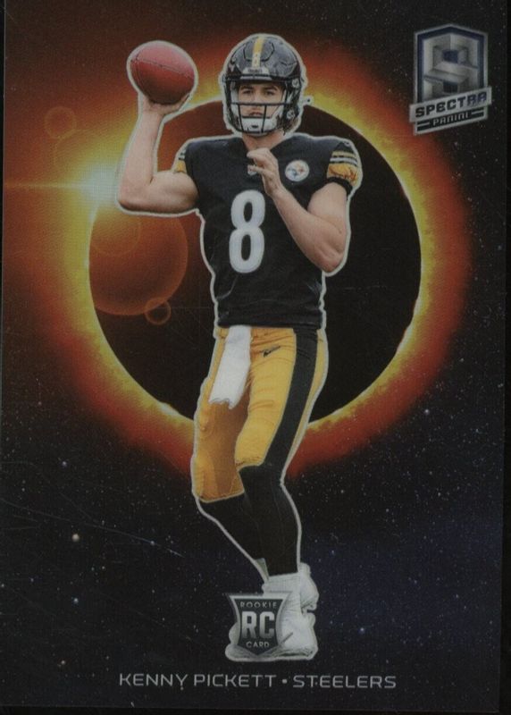 The Kenny Pickett 2022 Spectra #SE-9 Solar Eclipse /(SSP) Rookie card in Raw condition has not changed in price in the last 30 days and was last sold for $24.50 .