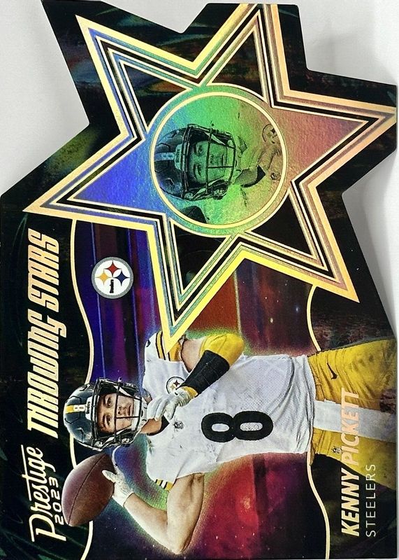 The Kenny Pickett 2023 Prestige #TS-15 Throwing Stars /(SSP) card in Raw condition has not changed in price in the last 30 days and was last sold for $5.00 .