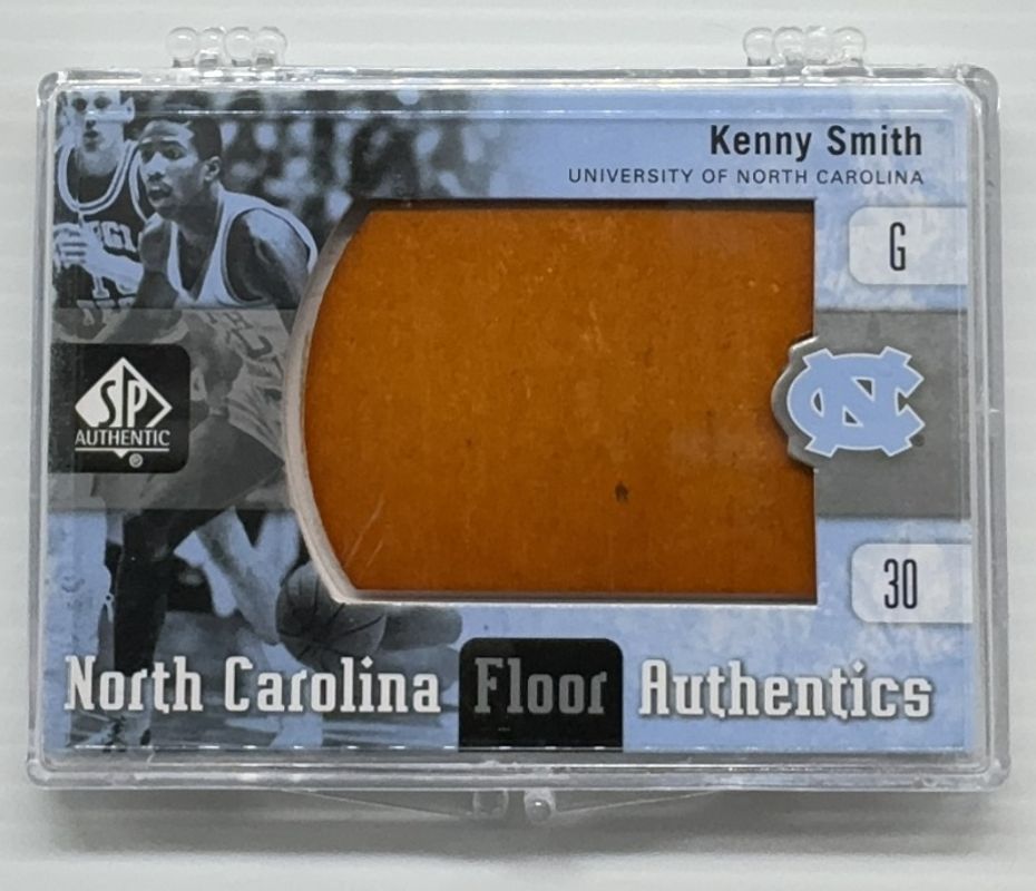 The Kenny Smith 2011 SP Authentic #UNC-KS North Carolina Floor card is 1 of 7 Kenny Smith's card variations in the 2011 SP Authentic set being tracked by Sports Card Investor, including #HC-SM Home Court Signatures, #UNC-SM North Carolina Floor, #UNC-SM North Carolina Floor Autographs /75, #UNC-KS North Carolina Floor Autographs /75, and #CJ-KS College Pride Autographs /40.