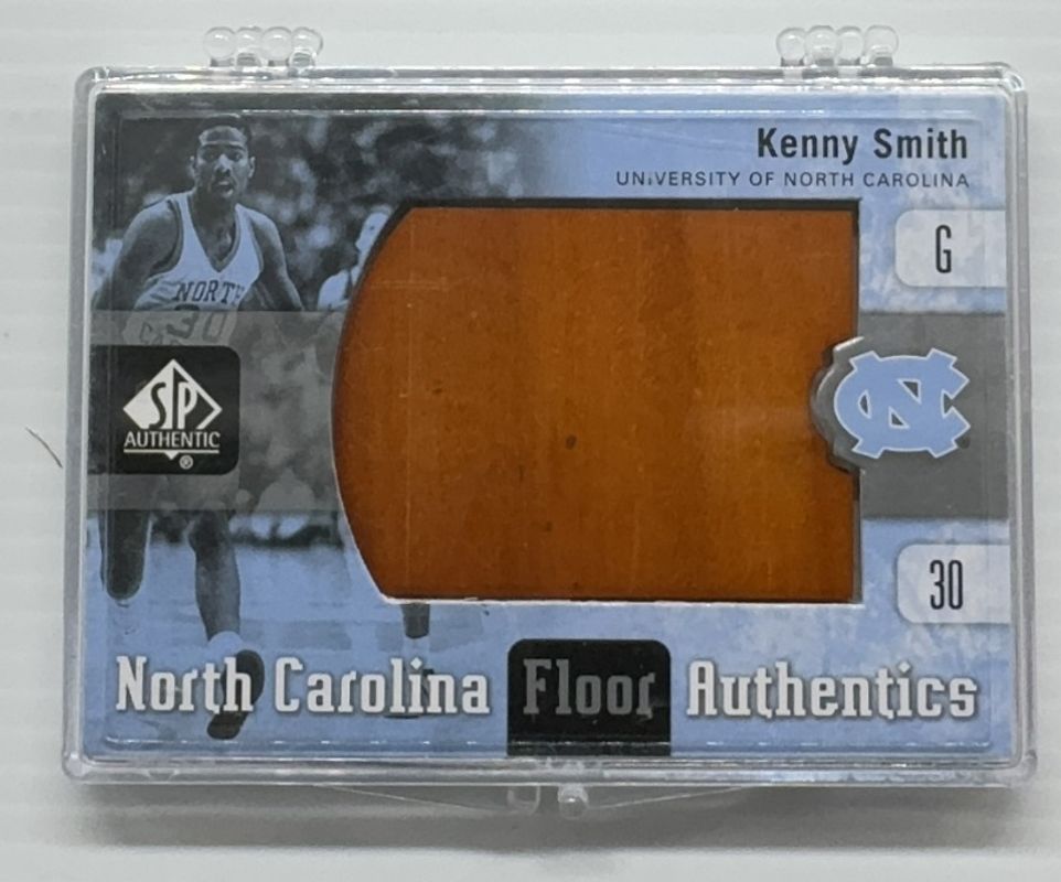 The Kenny Smith 2011 SP Authentic #UNC-SM North Carolina Floor card is 1 of 7 Kenny Smith's card variations in the 2011 SP Authentic set being tracked by Sports Card Investor, including #HC-SM Home Court Signatures, #UNC-KS North Carolina Floor, #UNC-SM North Carolina Floor Autographs /75, #UNC-KS North Carolina Floor Autographs /75, and #CJ-KS College Pride Autographs /40.