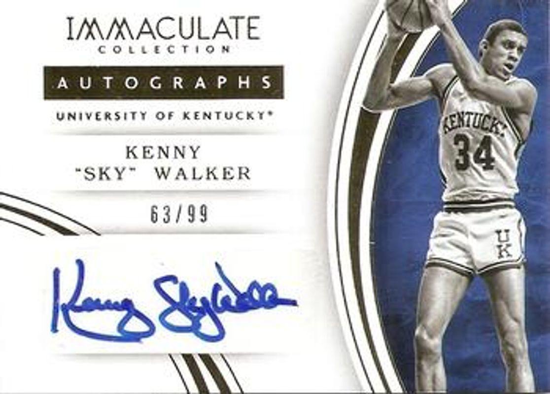 The Kenny Walker 2016 Immaculate Collegiate #104 Autographs /25 card is 1 of 5 Kenny Walker's card variations in the 2016 Immaculate Collegiate set being tracked by Sports Card Investor, including Autographs - Red /10, Autographs - Blue /5, Autographs - Gold /1, and Autographs - Platinum /1.