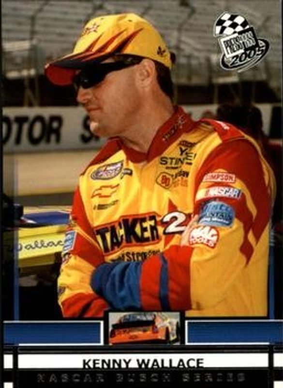 The Kenny Wallace 2005 Press Pass #44 Base card is 1 of 6 Kenny Wallace's card variations in the 2005 Press Pass set being tracked by Sports Card Investor, including Beckett Samples, Platinum /100, eBay Previews /5, Autographs, and Snapshots Extra.