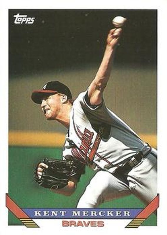 The Kent Mercker 1993 Topps #144 Base card is 1 of 2 Kent Mercker's card variations in the 1993 Topps set being tracked by Sports Card Investor, including Gold.