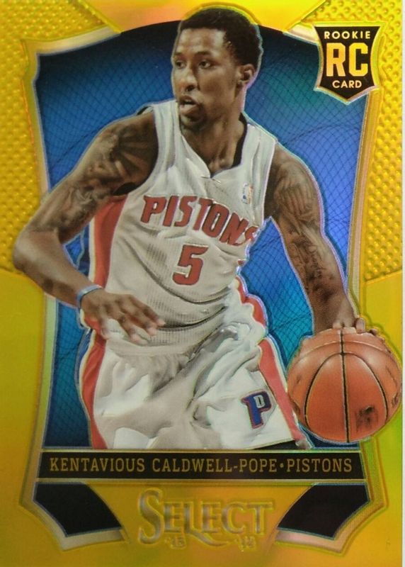 The Kentavious Caldwell-Pope 2013 Select #166 Gold /10 Rookie card in Raw condition has not changed in price in the last 30 days and was last sold for $60.00 .