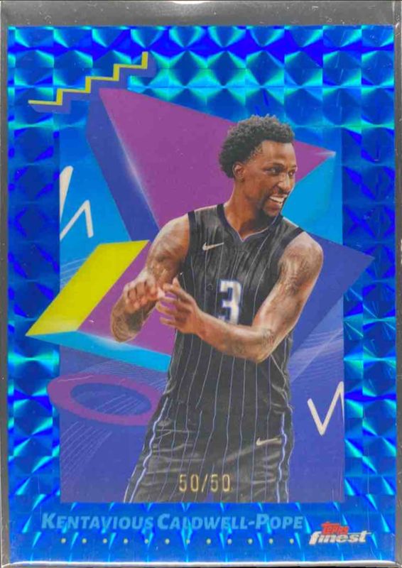 The Kentavious Caldwell-Pope 2024 Topps Finest #169 Base Uncommon - Blue Geometric Refractor /50 card is 1 of 44 Kentavious Caldwell-Pope's card variations in the 2024 Topps Finest set being tracked by Sports Card Investor, including Base Rare, Base Rare - Geometric Refractor, Base Rare - Refractor, Base Rare - Sky Blue Refractor, and Base Rare - X-Fractor.