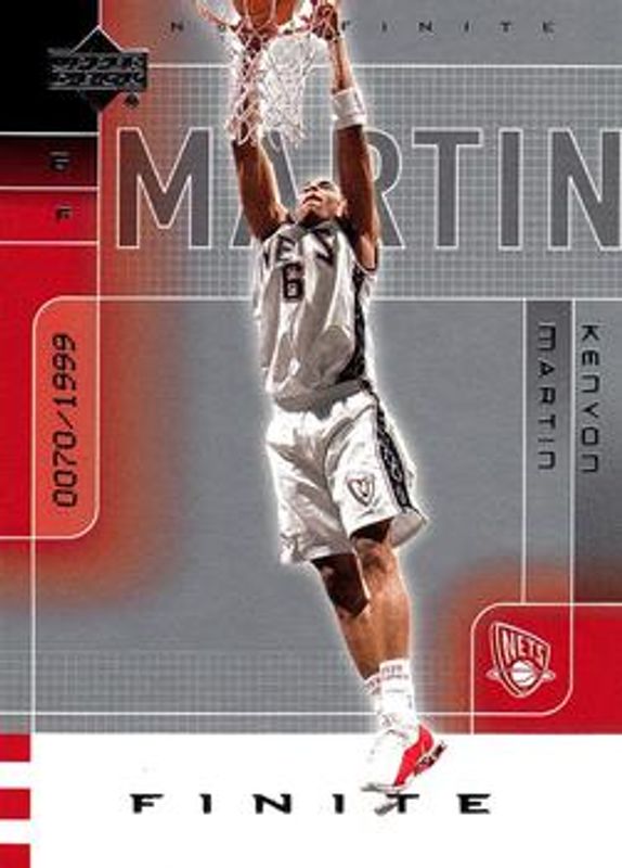 The Kenyon Martin 2002 Upper Deck Finite #59 Base /900 card is 1 of 4 Kenyon Martin's card variations in the 2002 Upper Deck Finite set being tracked by Sports Card Investor, including #164 Base /900, #196 Base /900, and #KM-A Signatures /80.