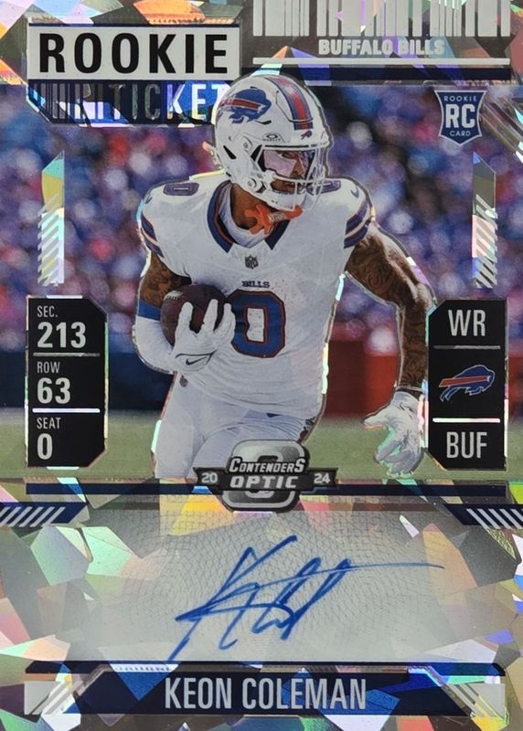 Keon Coleman 2024 Contenders Optic #117 Rookie Ticket Auto - Cracked Ice /22 RAW Price Guide