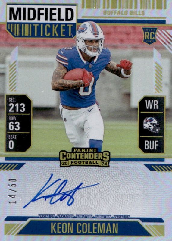 2024 Contenders Keon Coleman Rookie Ticket Variation Auto RC Midfield VAR #14/50