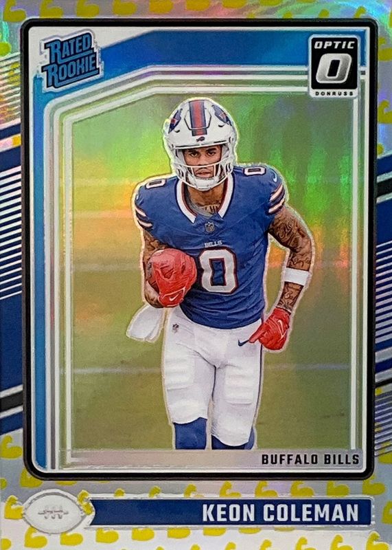 This card is 1 of 82 Keon Coleman's card variations in the 2024 Optic set being tracked by Sports Card Investor, including Base, Blue Hyper, Blue Scope, Green Hyper, and Green Velocity.