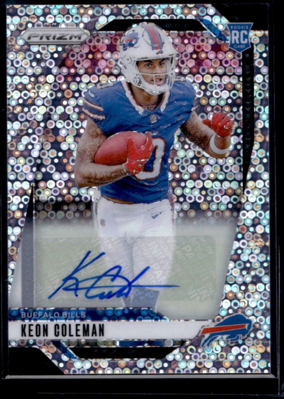 The Keon Coleman 2024 Prizm #362 Base Autographs - No Huddle Rookie card is 1 of 144 Keon Coleman's card variations in the 2024 Prizm set being tracked by Sports Card Investor, including Base, Choice Blue Yellow Green, Choice Silver, Disco, and Green.