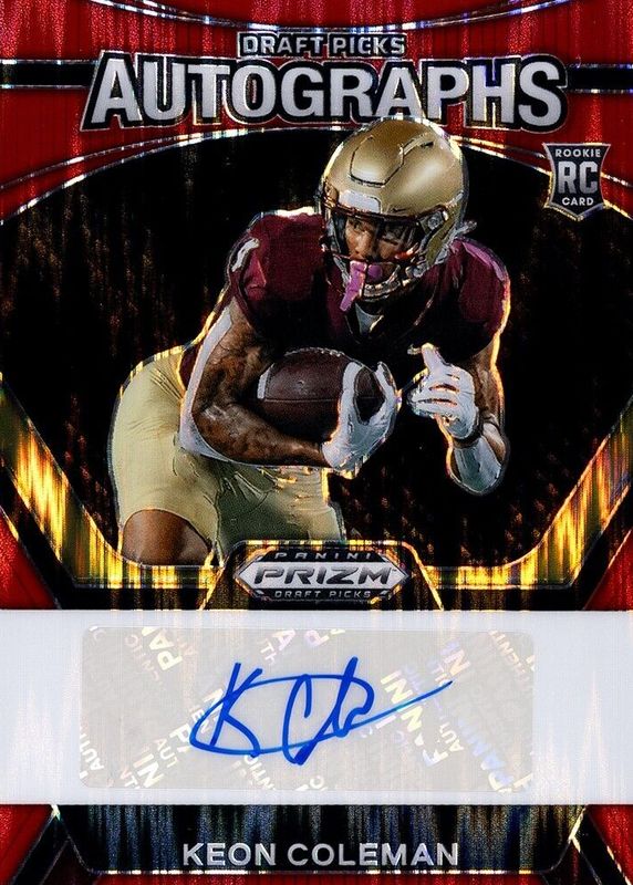 Keon Coleman 2024 Prizm Draft Picks #DPA-KCN Draft Picks Autographs - Red Flash /5 Rookie RAW Price Guide