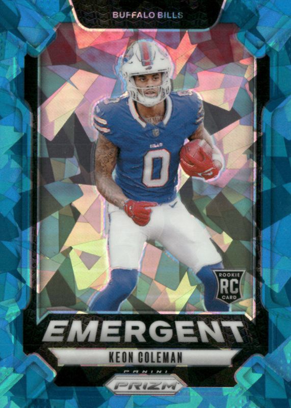 KEON COLEMAN 2024 PANINI PRIZM EMERGENT ROOKIE BLUE CRACKED ICE CARD 03/99