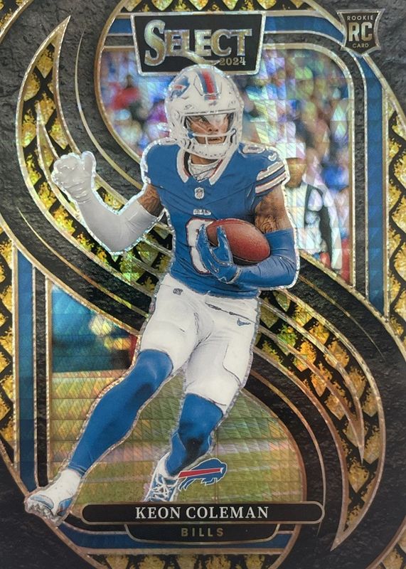 The Keon Coleman 2024 Select #153 Premier Level Gold Dragon Scale /10 Rookie card in Raw condition has not changed in price in the last 30 days and was last sold for $149.99 .
