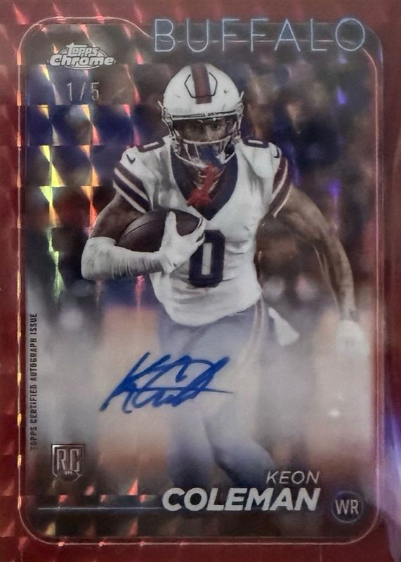Auctions Ending Soon for Keon Coleman 2024 Topps Chrome #RA-KCO Rookie Auto - Red Refractor /5 RAW
