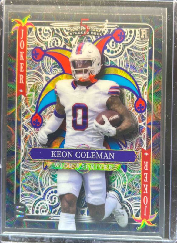 Keon Coleman 2024 Wild Card 5 Card Draw Stacked Deck Promo #SDPJ-KCN White Joker Cross Hatch Blue /1 Rookie RAW Price Guide