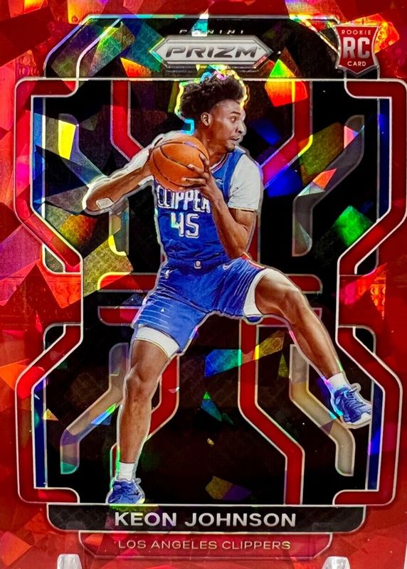 2021-22 Panini Prizm Red Cracked Ice Keon Johnson RC Los Angeles Clippers #326