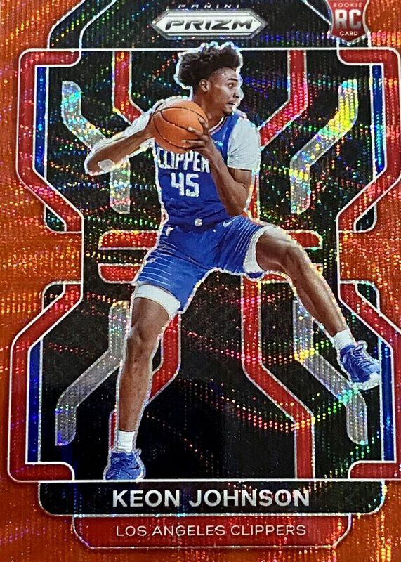 2021-22 Panini Prizm Prizms Ruby Wave #326 Keon Johnson ROOKIE RC CLIPPERS