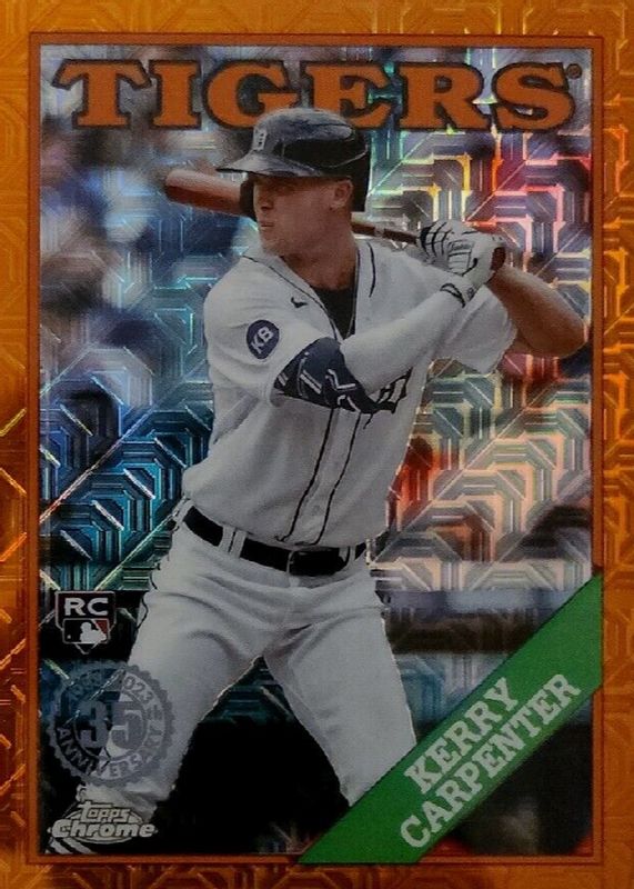 The Kerry Carpenter 2023 Topps Silver Pack #2T88C-81 1988 Chrome Promo - Orange Refractor (Series 2) /25 Rookie card in Raw condition has not changed in price in the last 30 days and was last sold for $27.00 .