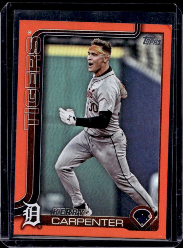 The Kerry Carpenter 2025 Topps #543 Orange Rainbow /25 card is 1 of 68 Kerry Carpenter's card variations in the 2025 Topps set being tracked by Sports Card Investor, including Base, Aqua Holo Foil, Diamante Foil, Holo Foil, and Pink Diamante Foil.