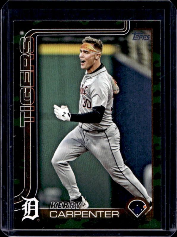 The Kerry Carpenter 2025 Topps #543 Wood /25 card is 1 of 68 Kerry Carpenter's card variations in the 2025 Topps set being tracked by Sports Card Investor, including Base, Aqua Holo Foil, Diamante Foil, Holo Foil, and Pink Diamante Foil.