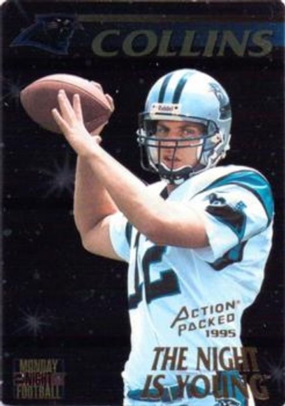 The Kerry Collins 1995 Action Packed Monday Night Football #85 Highlights Rookie card is 1 of 4 Kerry Collins' card variations in the 1995 Action Packed Monday Night Football set being tracked by Sports Card Investor, including Base, 24K Gold, and Night Flight.
