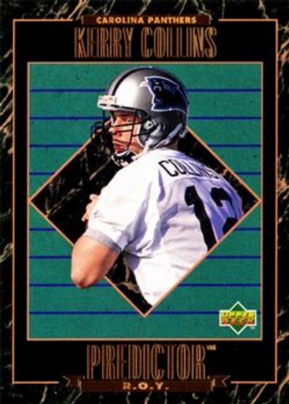 The Kerry Collins 1995 Upper Deck #HP14 Predictors: Award Winners Rookie card is 1 of 9 Kerry Collins' card variations in the 1995 Upper Deck set being tracked by Sports Card Investor, including Base, Electric, Electric Gold, Predictors Exchange: Award Winners, and Predictors Exchange: League Leaders.