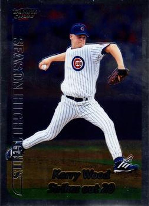 The Kerry Wood 1999 Topps SuperChrome #33 Base card is 1 of 4 Kerry Wood's card variations in the 1999 Topps SuperChrome set being tracked by Sports Card Investor, including #5 Base, #33 Refractor, and #5 Refractor.